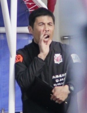 左写真/試合中、選手たちに声をかける四方田ヘッドコーチ