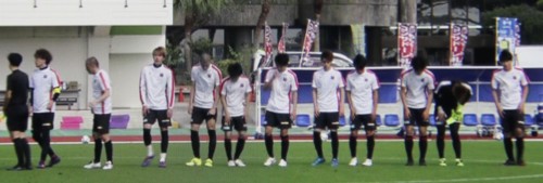上写真/2本目は0−0で終了し、ピッチにあいさつ。翌日25日は休養日