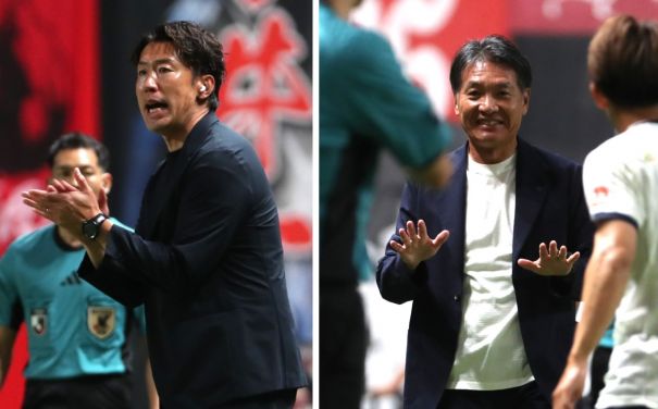 ¡¡¾å¡§£³ÃÊÌܼ̿¿¡¿»³·Á¤¬»¥ËÚ¤ò£²¡Ý£±¤ÇÇˤꤢ¤¤¤µ¤Ä¤¹¤ëξ¥Á¡¼¥à¤ÎÁª¼ê¤¿¤Á¤Î¸åÊý¤Ç»³·Á¤Î¥µ¥Ý¡¼¥¿¡¼¤¬Áª¼ê¤Î·òÆ®¤ò¾Î¤¨¤ë