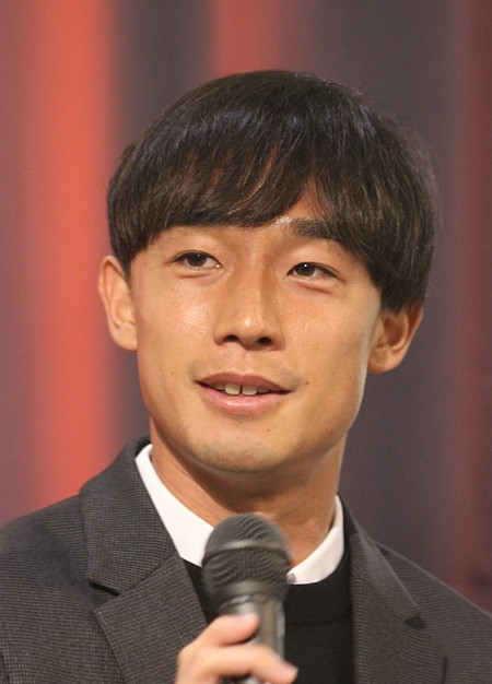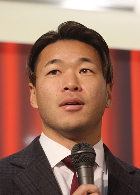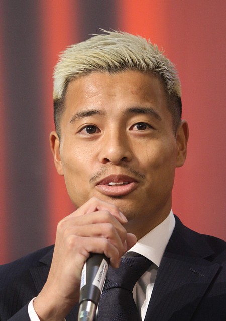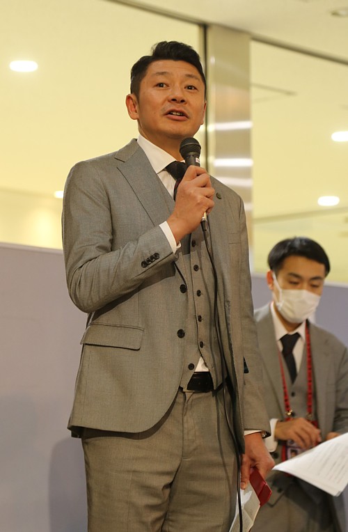 上写真/新入団選手を紹介する北海道コンサドーレ札幌の河合竜二GM
