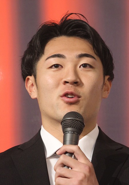 上写真/新加入のあいさつをする10年ぶりに札幌に戻った堀米悠斗(中央)、他の選手左から田川知樹、内田瑞己、川原颯斗、佐藤陽成、堀米勇樹、唯野鶴真