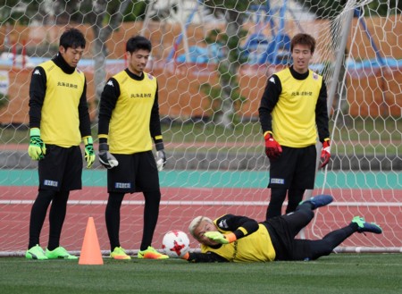 上写真/正GKを競う4人、昨年の正GKク・ソンユン(手前下)を脅かすのは誰か? 左から金山、杉山、阿波加