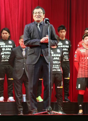 上写真/北海道コンサドーレ札幌キックオフ2019であいさつする野々村芳和社長