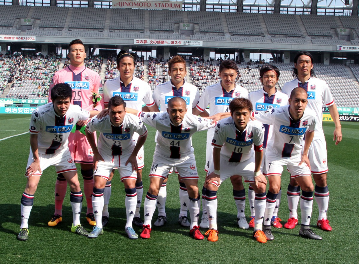 今季開幕戦先発を勝ち取った北海道コンサドーレ札幌のイレブン。前列左からDF進藤(35番)ユースからの昇格2年目でJリーグにデビュー、MFマセード(23番)新加入のブラジル人、MF小野(44番)昨季はけがで悔しい思いをした、MF宮澤(10番〉キャプテンの重責を担う、FWジュリーニョ(7番)新加入のブラジル人。後列左からGKク・ソンユン(25番)、札幌のエースFW都倉、MF稲本、DF河合(4番)、MF石井の3選手も昨年に続き、DF増川新加入のベテラン。2月28日、味の素スタジアム、撮影・石井一弘